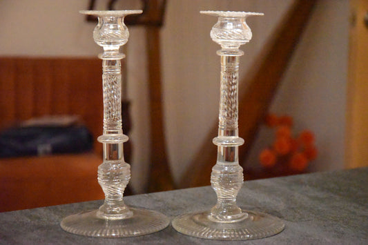 Superb Large Pair Of Victorian Cut Crystal Glass Candlesticks