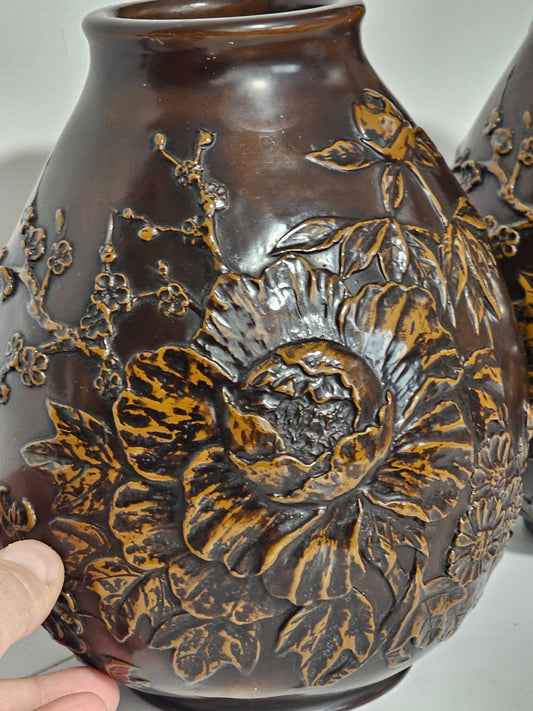 Stunning Pair Of Late 19th/early 20thc Oriental Bronze Vases - Signed