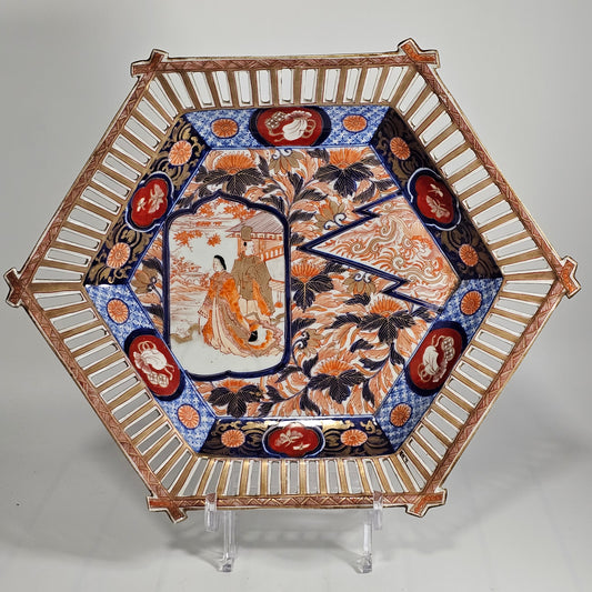 Stunning Large 1900'S Oriental Imari Fretted Charger 39.5cm Diameter