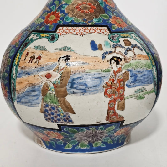 Large Antique Pair Of C 1890 Japanese Hichozan Fukugawa Vases - Signed