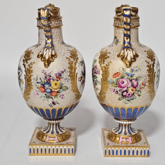 Stunning Pair Of Regency Derby Style Hand-painted Porcelain Vases, C.1810–1825