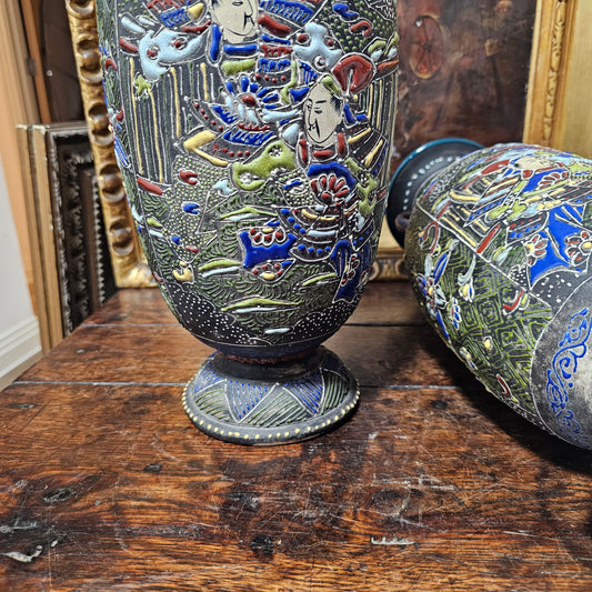 Large Antique Pair Of C 1890 Japanese Edo Period Satsuma Moriage Vases