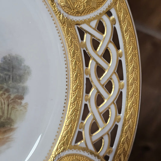 Stunning Minton Reticulated Hand-Painted Porcelain Plate C1870 (Lord Milton)