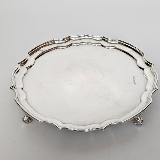 Hallmarked Sterling Silver 20.5cm Chippendale Salver on Feet Sheffield 1962