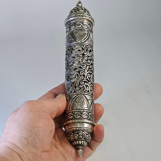 Mid-19th Century Ornate Silver Scroll Holder, Moroccan Jewish Judaica Antique