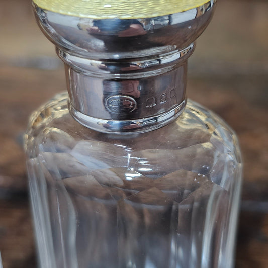 Exquisite Pair Of Art Deco Silver, Yellow Enamel & Cut Glass Scent Bottles C1930