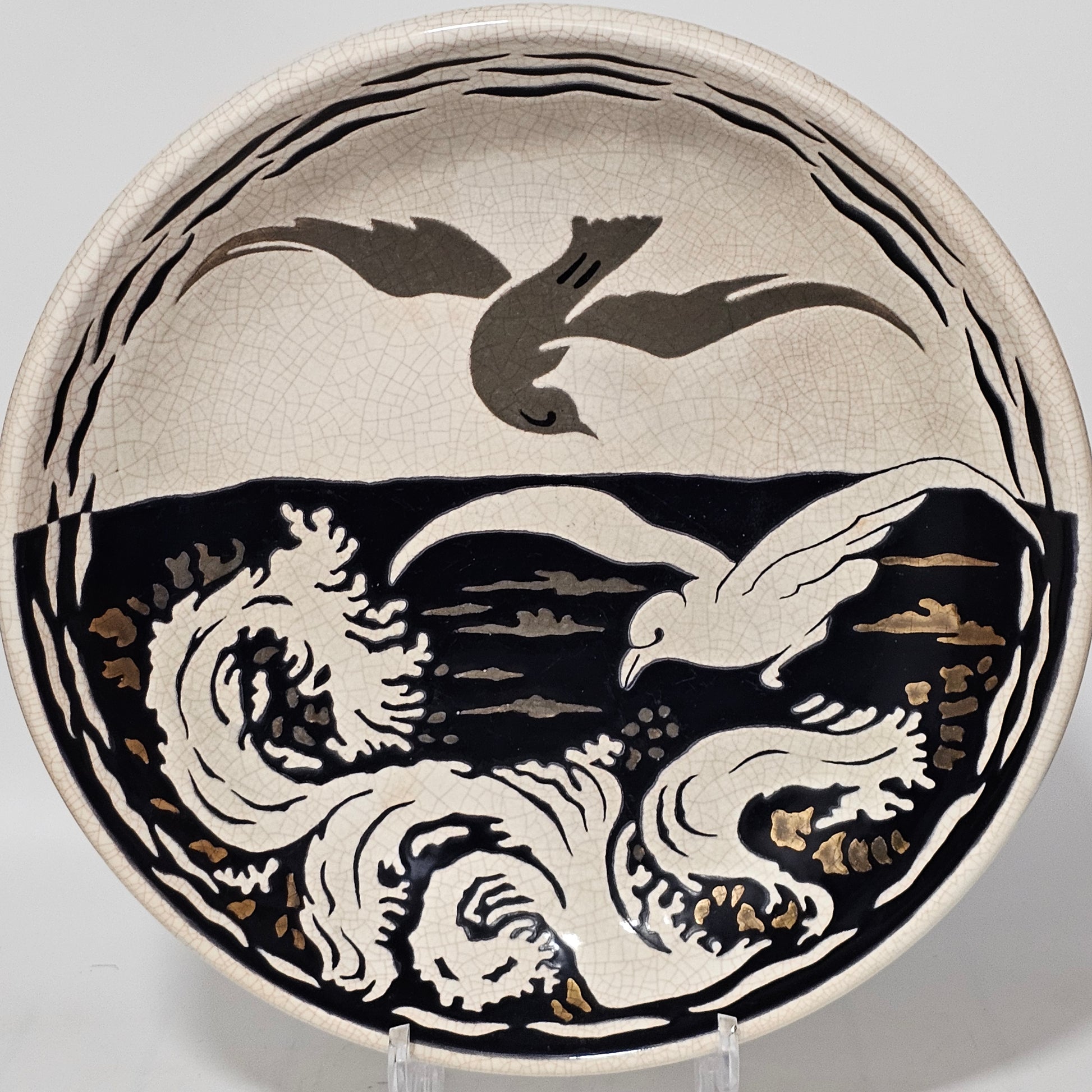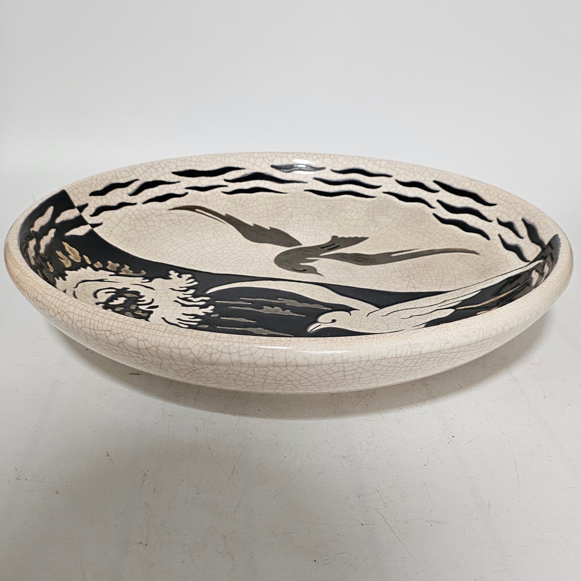 Exceptional Longwy “Primavera” Art Deco Charger with Seagull Motif – France, circa 1930