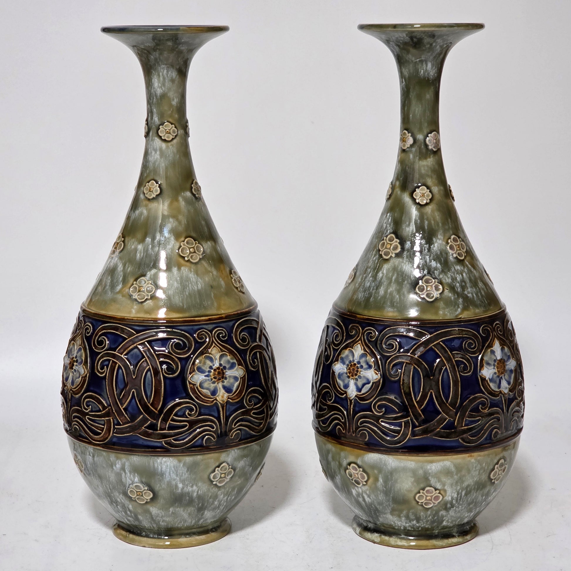 A superb and highly decorative pair of early 20th-century Royal Doulton vases — beautiful examples for collectors or statement pieces for any interior.