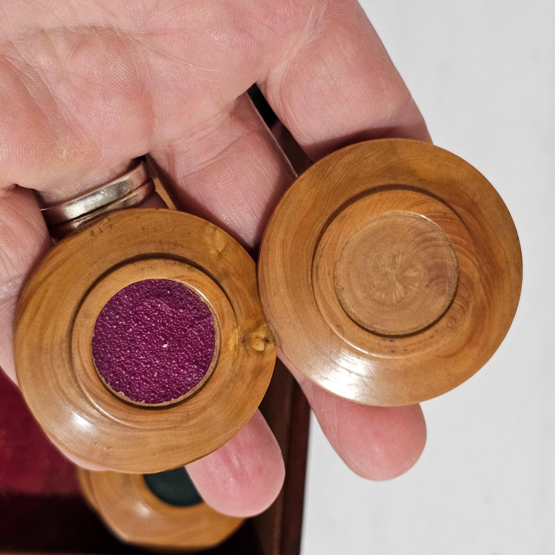 Inside, you will find four ebony squails in various colours and four boxwood squails, all in superb condition. The set also includes a measuring ruler for accuracy, as well as a pewter squail jack from 1839, ensuring that all components are original and true to the period.