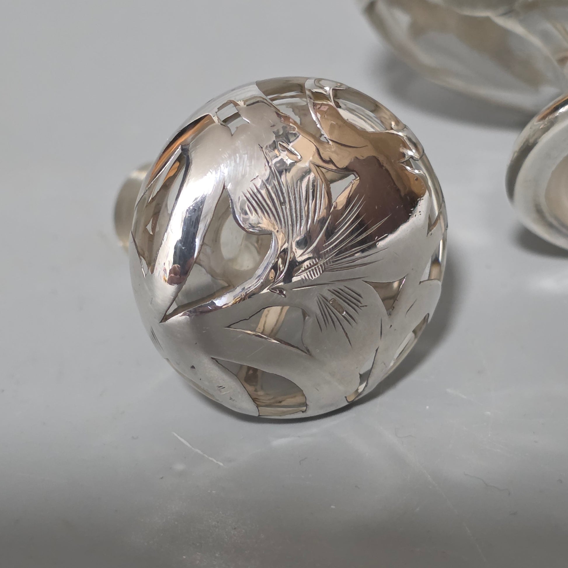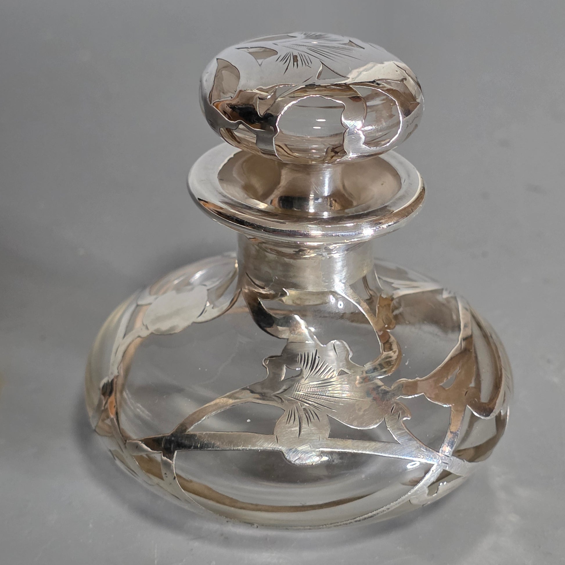 A charming and collectible piece of Art Nouveau decorative glass—ideal for perfume bottle collectors or lovers of fine silver overlay.