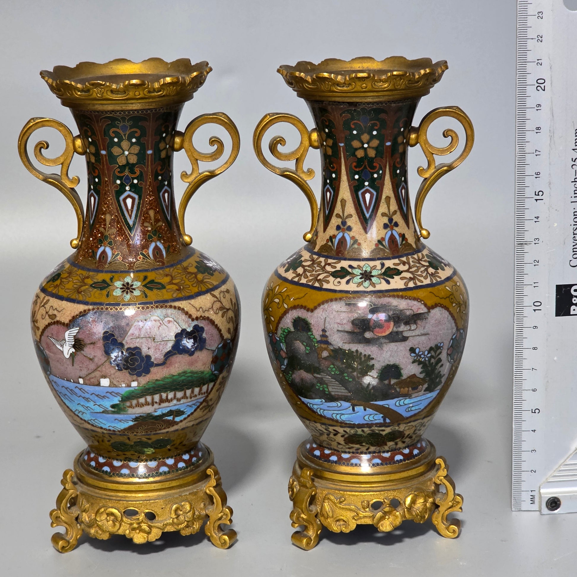 Exceptional Pair of 19th-Century Japanese Cloisonné & French Ormolu Mounted Vases