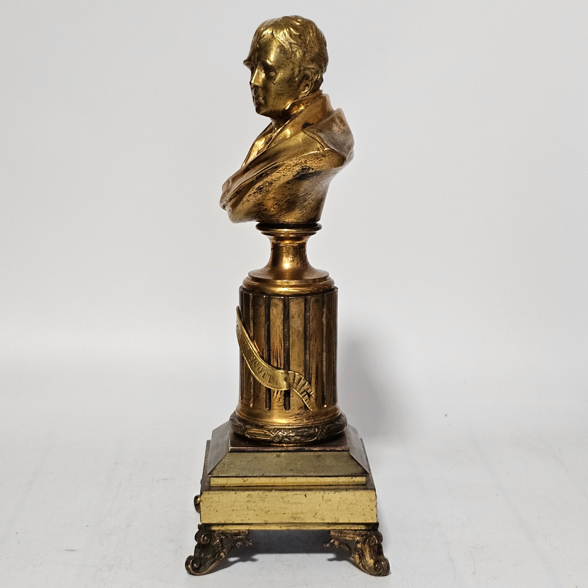 Fine 19th Century Gilt Bronze Bust of Sir Walter Scott on Fluted Bronze Column – 34cm