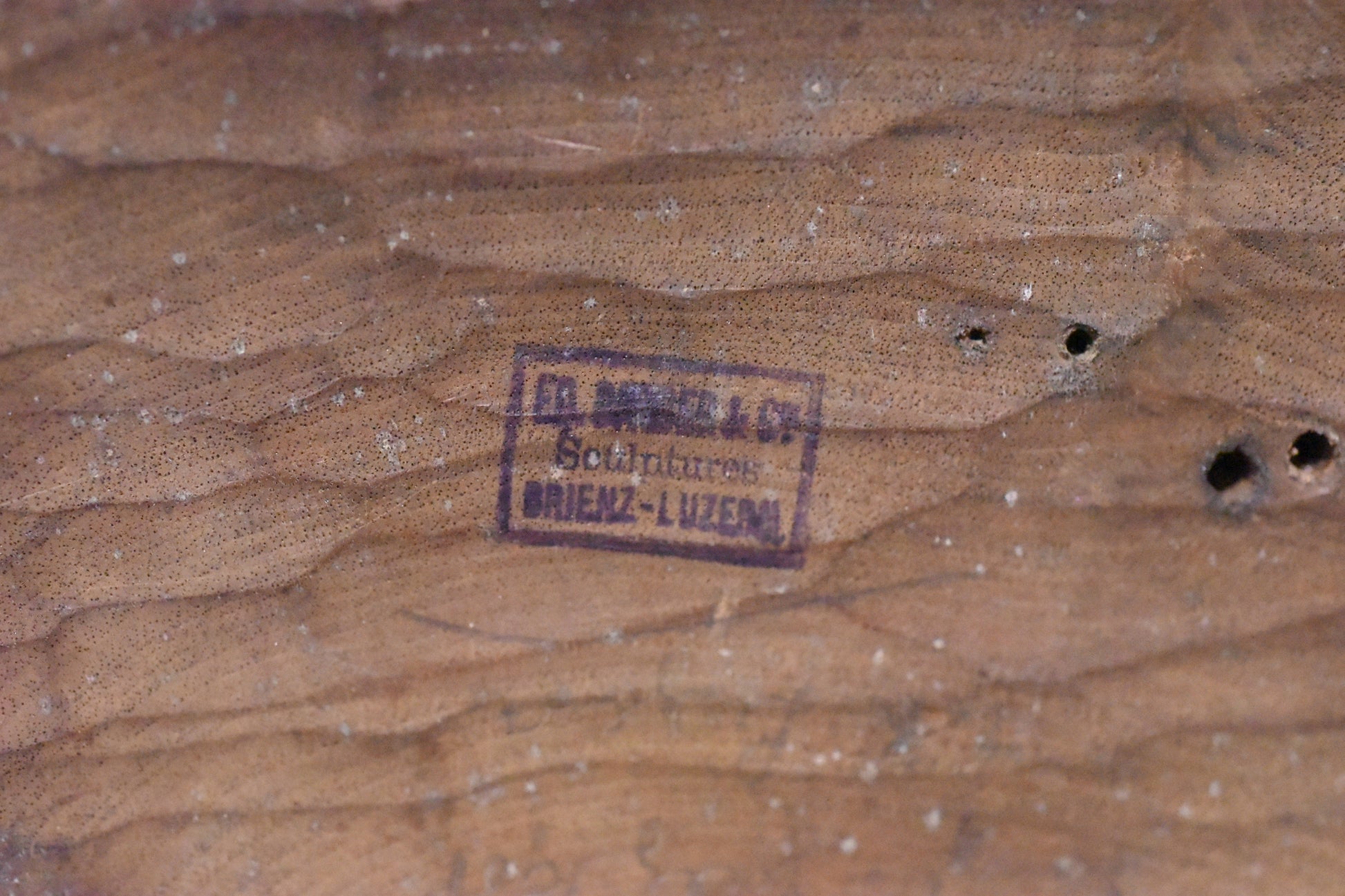 Among the most famous carvers of the region was Ed.Binder & Cie, the Huggler family, Albert Schilde inc. This incredible example is by Ed.Binder & Cie. Any of he above makers works is widely regarded as the finest in Brienz carving.
