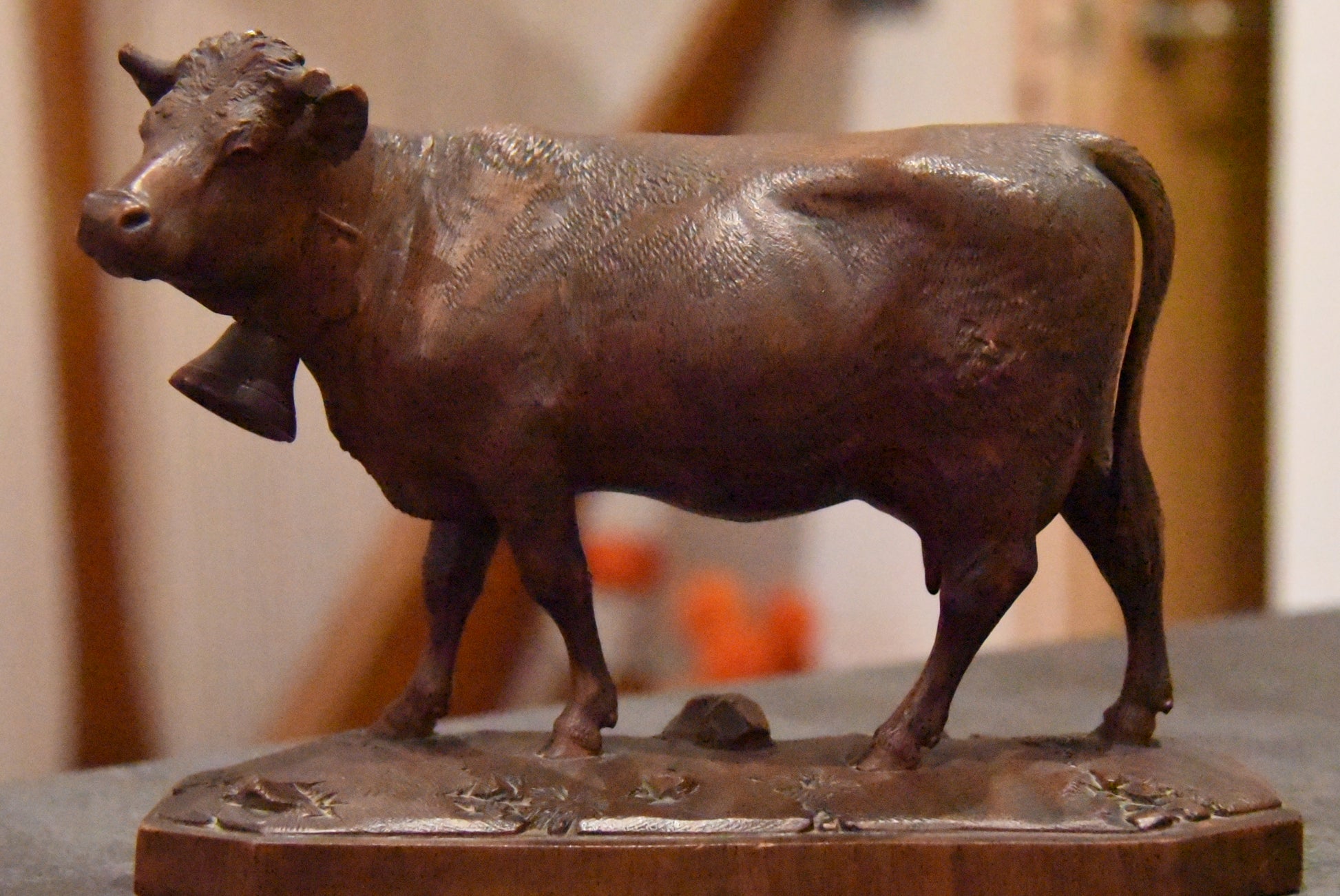 A Finely Carved Late 19th Century Black Forest Linden Wood Cow, Switzerland, by Ed.Binder & Cie.